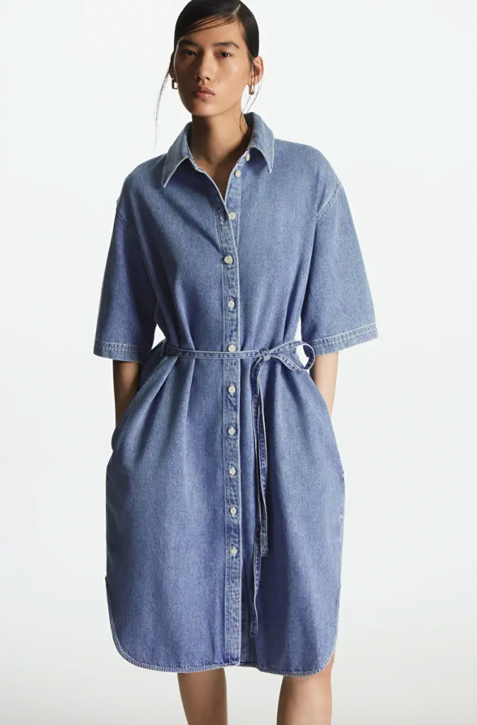 Nothing’s more casual or cool than classic blue denim. For a stiffer, thicker, more structured feel, opt for a dress made of the standard indigo you’re used to. But on supremely hot days, chambray is the sister version you’ll want to opt for instead — chambray dresses are more lightweight, softer, and have a smoother finish.