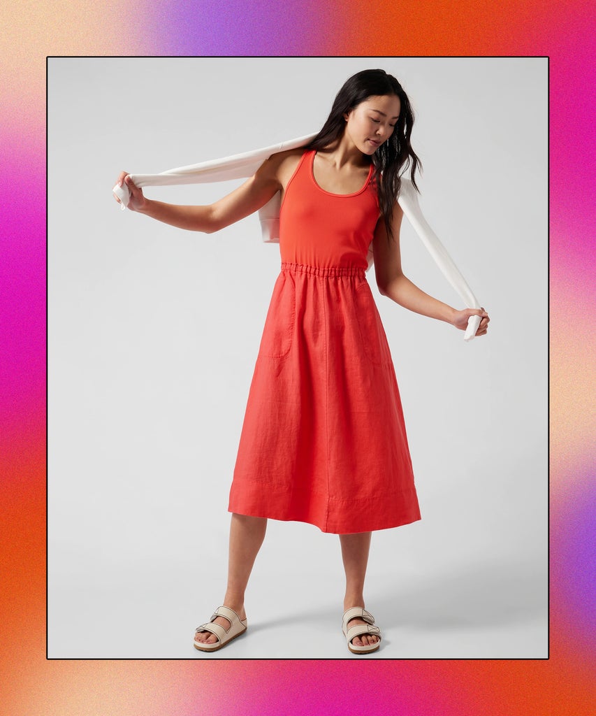 A linen dress is essential for summer, as its breathable flax fibers won’t stick to your body, no matter your sweat levels. The material is ultra-lightweight and billowy, which makes linen dresses perfect for all-day wear. The one thing to note is that the natural fabric tends to wrinkle easily, so to get rid of creases, dampen the dress and iron it using blasts of steam.