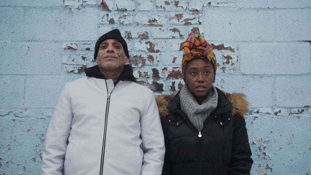 NM: If it seems like the part fits [Meeko] like a glove, it’s because I actually wrote it for him. I saw him in an independent film, another indie film called Gimme The Loot, and that film and my film share a producer. As I got to know him, I was like, Meeko is so great. I want to work with Meeko all the time, because here’s this man, this Gen X-er with tattoos all over his face and body and has clearly lived a hard life. He’s been incarcerated for some time, but there’s also a light there — despite all of the things that he must have done and heard and seen in his lifetime thus far. And I really liked that. He got somewhat famous playing Mouse on Euphoria. He’s playing a drug dealer in that, and that’s obvious, you know what I mean? For me, it felt really interesting and impossible to see what else he could do. And it’s like, what if he’s a devoted husband and father and works in a Christian bookstore, but has that face? And has those tattoos? Like, what will happen? And it turns out, great stuff [happens], good comedy.
