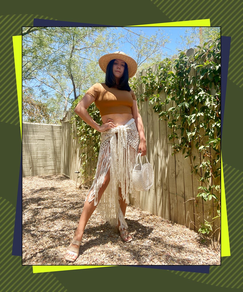 The skirt is cute for a pool party or a beachside vacation. I definitely would not wear it without a bikini bottom because the slit comes up a little high for that. It’s also made of water-friendly swimsuit material, though I can’t imagine wearing this in the water.” — Chichi Offor, Affiliate Associate Writer