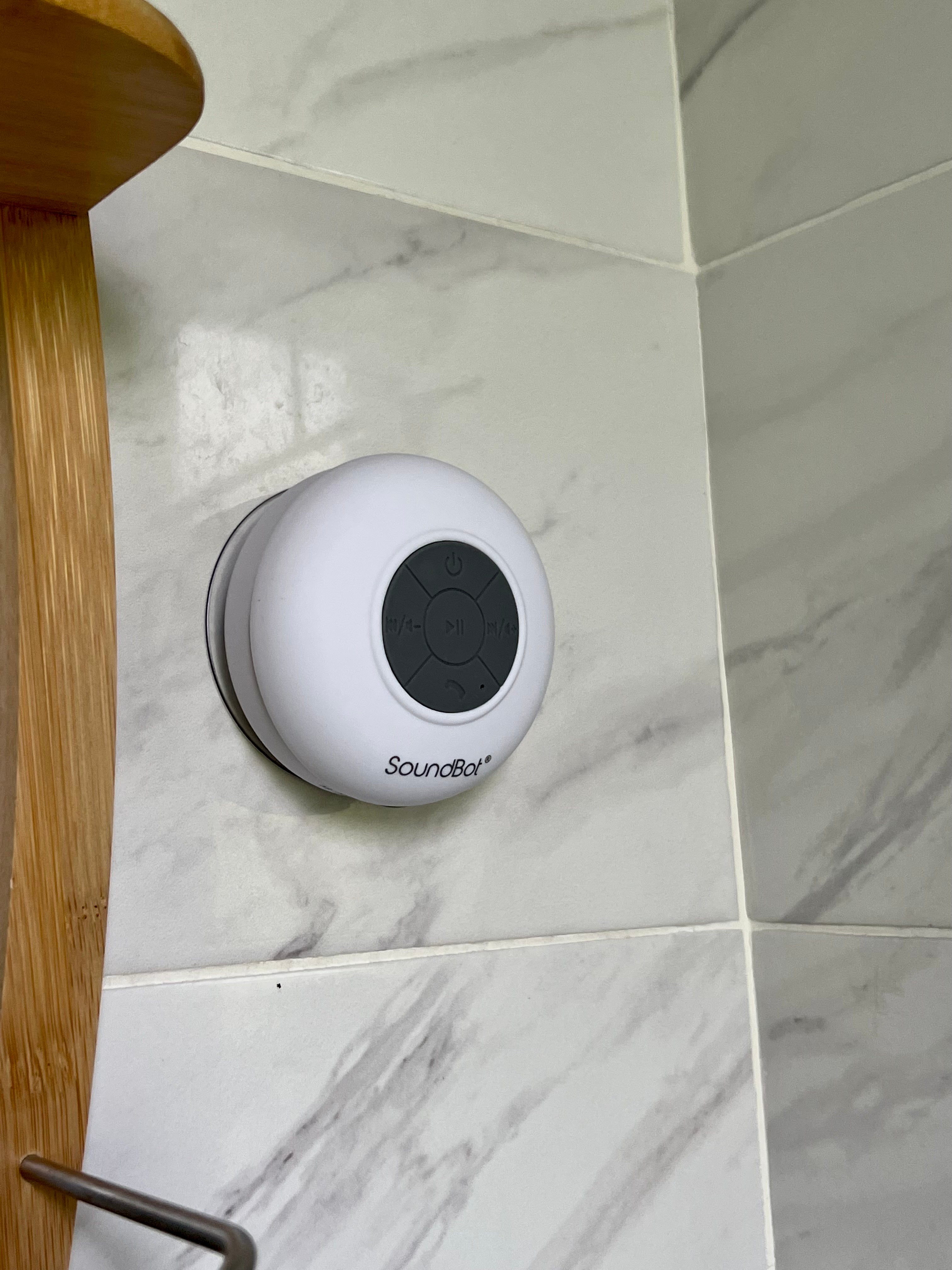 "This shower speaker landed itself in my Amazon cart this month, and I can confirm that it is worth the eerily small price tag. Trust, it will not give you Bose or Sonos levels of bass, but it will give you a great start to your morning with a lovely shower jam. It even has a button to pick up calls." —Alexandra Polk, Lifestyle Market Writer
