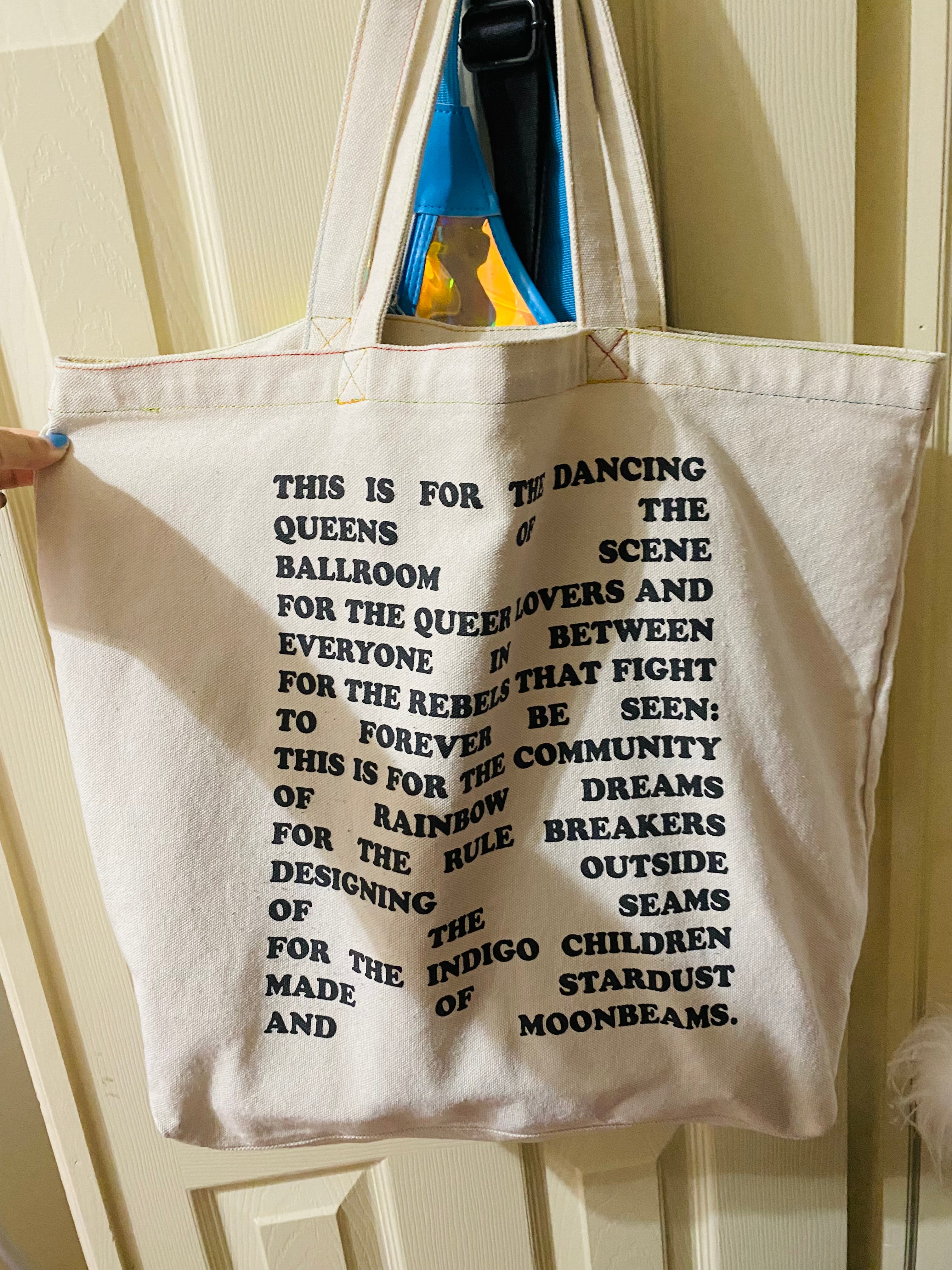 "The perfect beach and Pride bag combined. This tote is huge and fits all your necessities and so much more! I adore the poem and the subtle rainbow stitching. It’s my new favorite everyday tote bag!" —Mercedes Viera, Associate Deals Writer