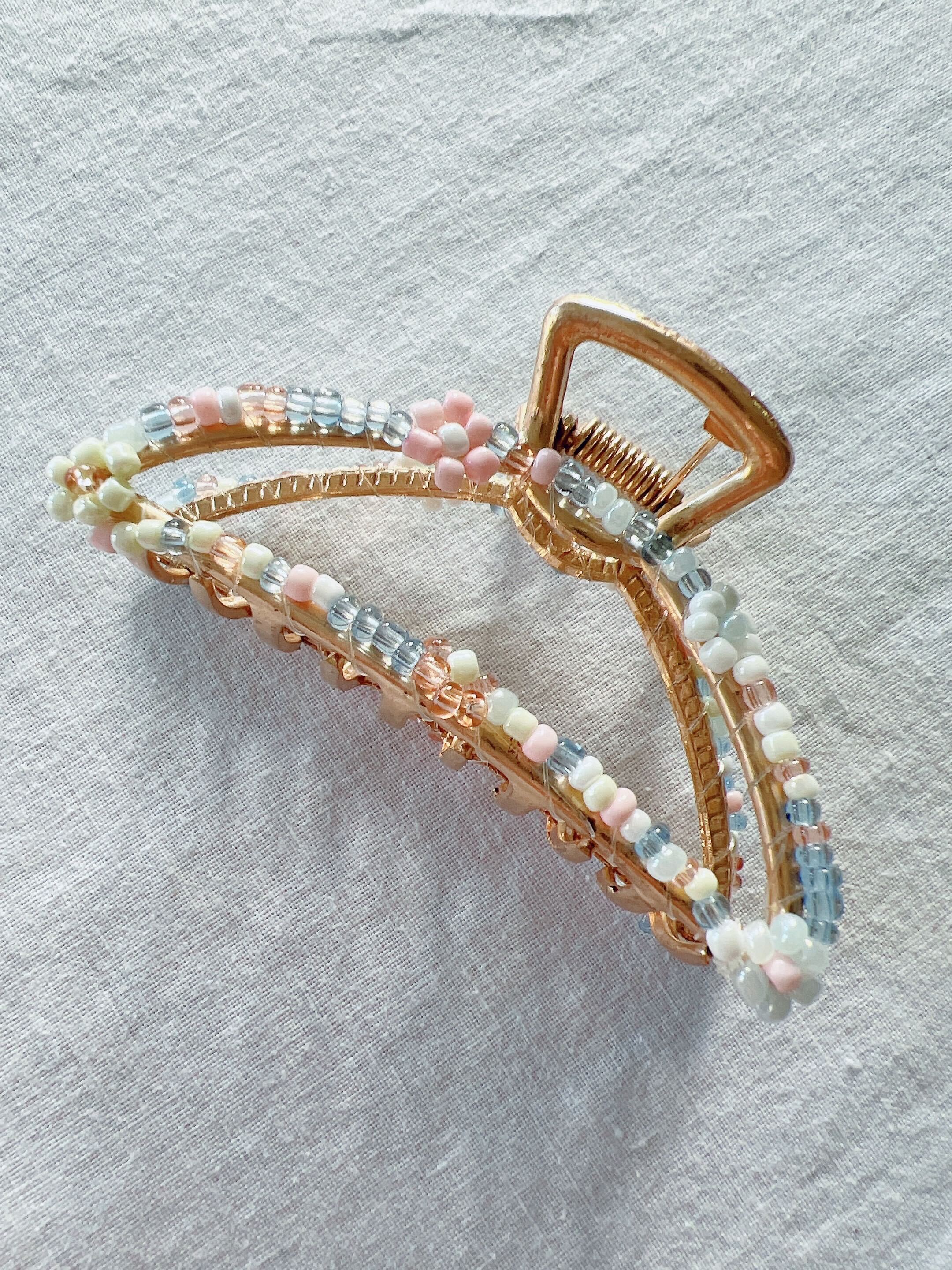"I had a plastic marble printed claw clip, and being the thick-haired lady I am, it snapped in half. After that, I decided I needed something stronger to grip all my hair without me having to touch it all the time. Plastic was not going to work. Then came Free People's Lala Metal Claw. I was standing by the checkout line at Free People, and there was a display of hair accessories. What caught my eye was this gorgeous beaded floral and gold delicate yet sturdy claw clip that perched at the top. I'm a sucker for pastel hues furthermore floral detailing. It was everything I loved and everything I needed. I've used it for a while now and never leave the house without it." —Vivien Lee, Affiliate Fashion Writer