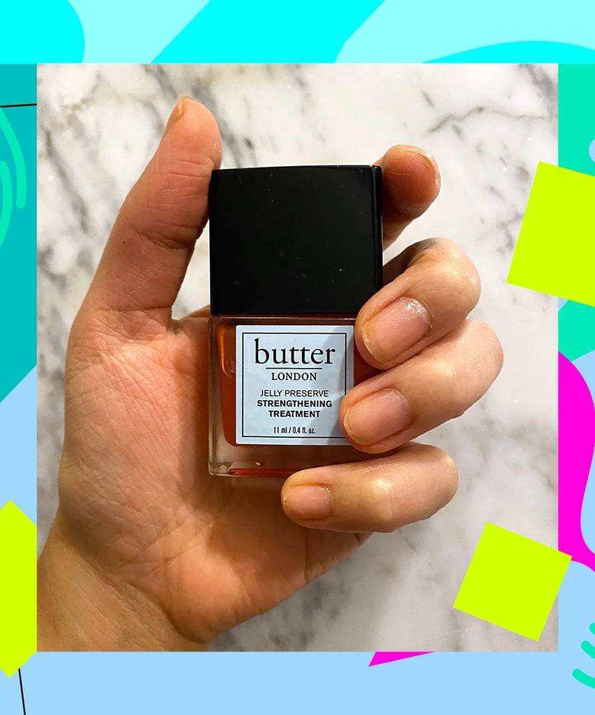 Recently, I tried Butter London’s Jelly Preserve Strengthening Treatment, a 10-free nail treatment that’s basically a multivitamin for your manicure. In addition to rehabbing your nails with ingredients like vegetable proteins, açai, calcium, keratin, and vitamin E, it adds a translucent, tinted glaze to your nails. Keep reading for the before and after nail makeover and deets — and to get our reader-exclusive discount code.