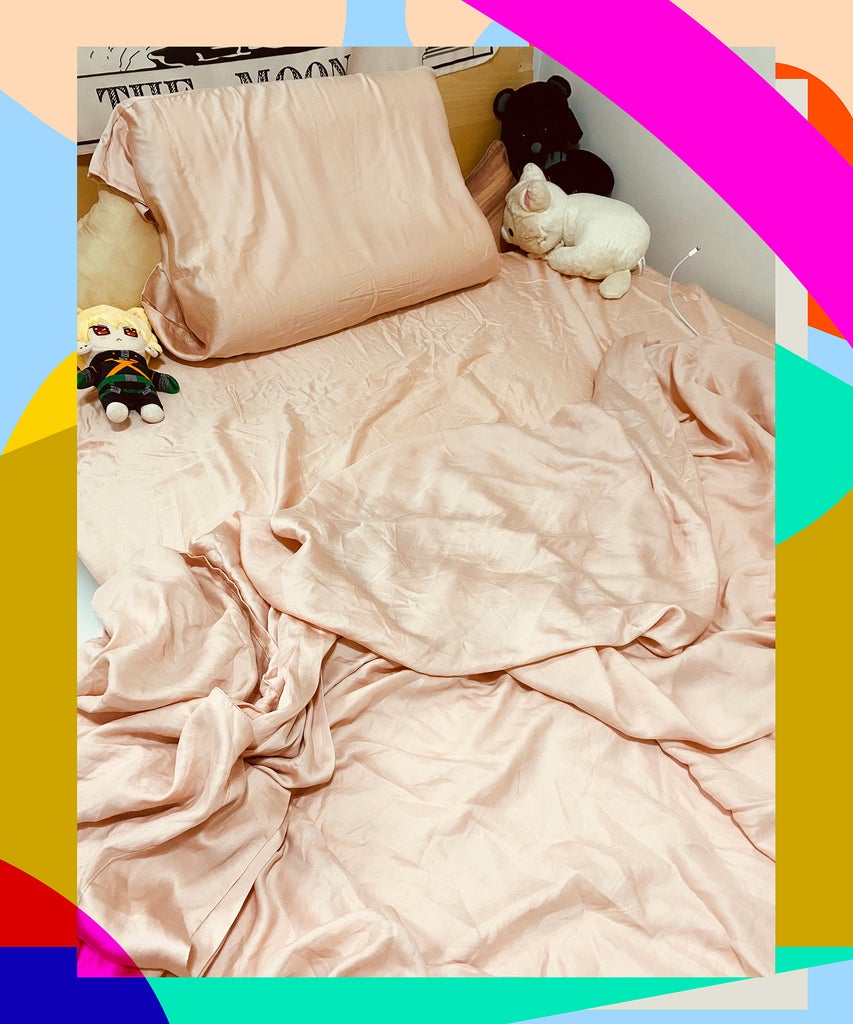 The sheets are cooling, antibacterial, and hypoallergenic — there’s not much else we can ask for. Every night, I feel like I’m sinking into a cloud. They’re the softest, and no other sheets I’ve owned can compare — even the more expensive ones (sorry, Brooklinen). The set comes with a fitted sheet, top sheet, and two pillowcases. Now, it’s been years since I last felt tempted to use a top sheet, but I couldn’t resist. I wanted to be surrounded by the silky smoothness of the fabric, so the top sheet it was. Wow, a game-changer. I definitely noticed a difference in temperature. I don’t wake up too hot anymore because of my thick comforter, thanks to these heavenly sheets.