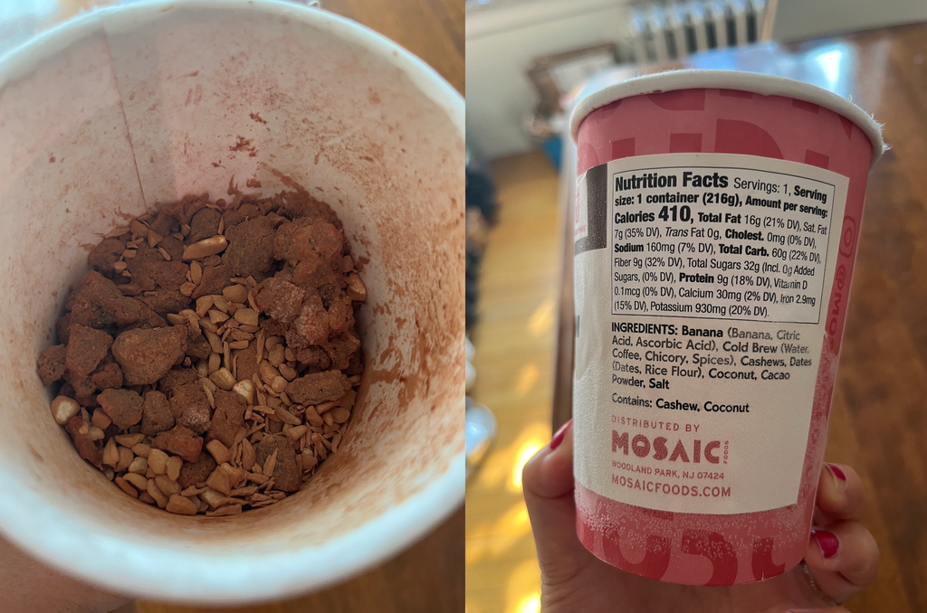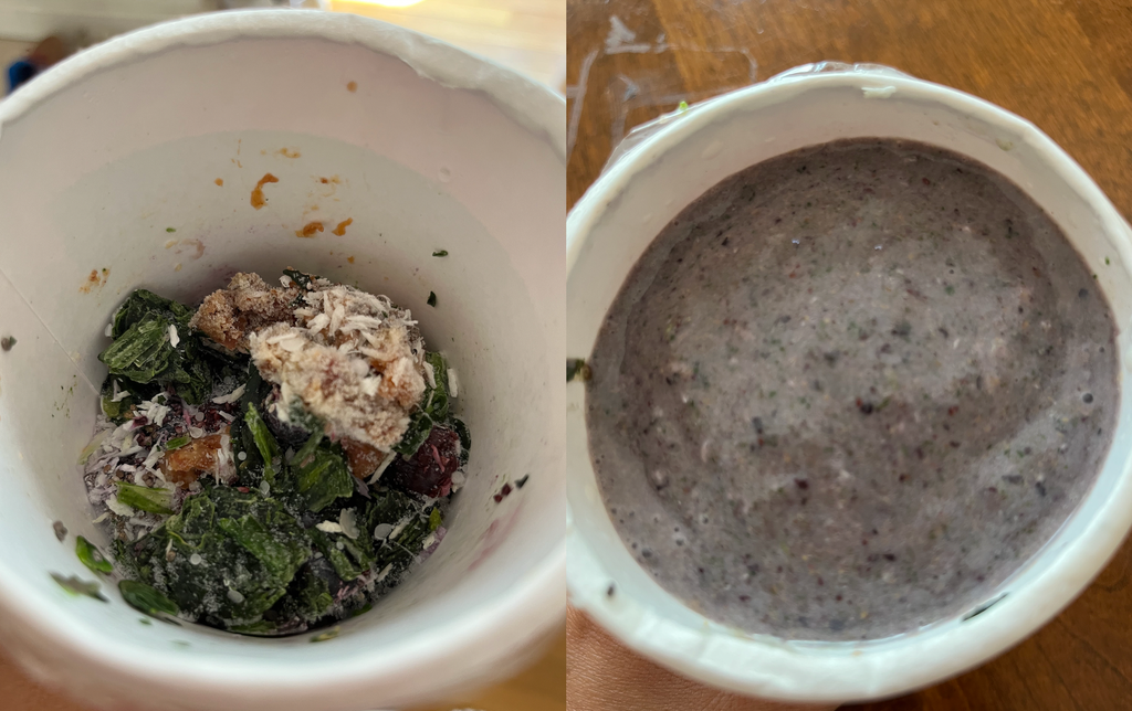 Back when I reviewed Mosaic Foods’ frozen meals, my main complaint was that the portions were way too small for a normal-level-hungry adult — I often ate two meals back-to-back just to feel satiated. So I’m thrilled to report that these smoothies are actually decently-sized and each one satiated me fully. I could have a smoothie for breakfast and feel absolutely energized till lunch. They also served me well as pick-me-ups in between lunch and dinner or when I knew I had a long day ahead of me and didn’t have time to drop everything to make an elaborate midday meal. All I had to do was pull one of these cups out of the freezer, pour whatever liquid in, then get everything blended in less than 20 seconds, and — voila! — I’d have a delightfully chill, naturally sweet drink sloshing around my dehydrated mouth. The only snag I’ll mention is that I often made a mess when the frozen smoothie contents would plop into the blender and splash back liquid onto my counter and appliance — but that’s not so much a fault of Mosaic Foods and more of a reality when dealing with gravity.