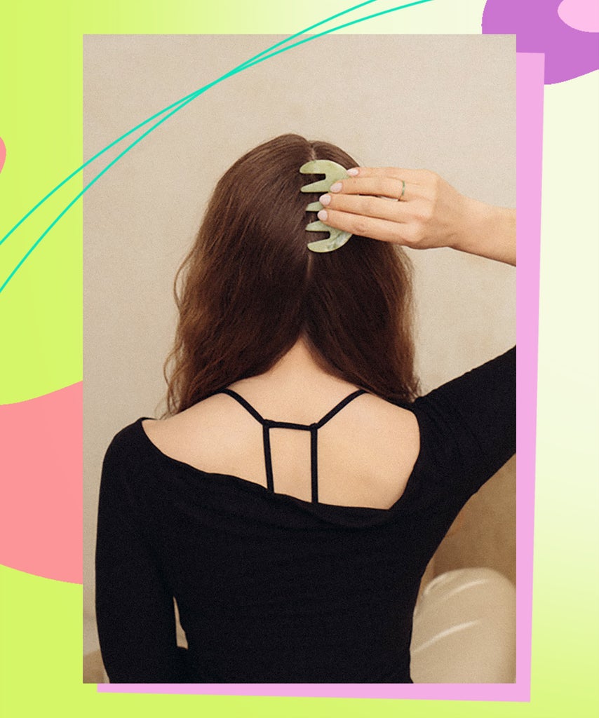 We’re talking about physiology, but there’s also immediate aesthetic benefits that come with scalp massage. “When you work with gua sha on the scalp and you loosen up the scalp muscles, you’re thereby opening up the pathways of circulation,” Chiu says. “You will notice a change in how you feel pretty instantly. A lot of people will notice, ‘Oh, I’m working on my scalp, but my neck feels better, my jaw feels better, my eyes look more awake and open.’ You know how you leave a facial and your skin looks plumper? Scalp massage can give you that, almost instantly.”