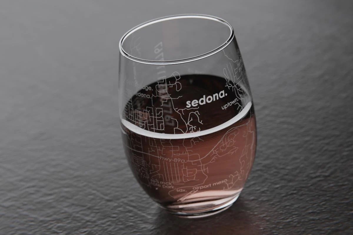 Well Told Design Hometown Map Stemless Wine Glass, $, available at Well Told Design