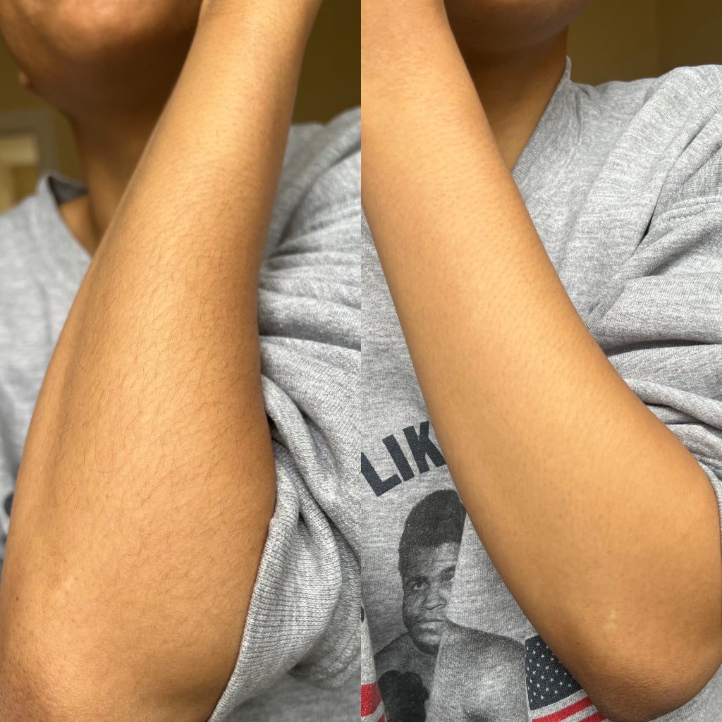 I can’t show you my real results (I did shave my arm for journalistic purposes), but I can give you a worthy testimonial starting with my hair removal history. I prefer to get Brazilian waxes as it completely eradicates my down-there hair for a few weeks and feels the breeziest. When my rent takes financial priority, I’ll trim with some scissors and then do as best as I can with a razor. The common denominator here is extreme measures. I never found a happy medium with my follicles until The Trimmer entered the building — specifically, my bathroom.