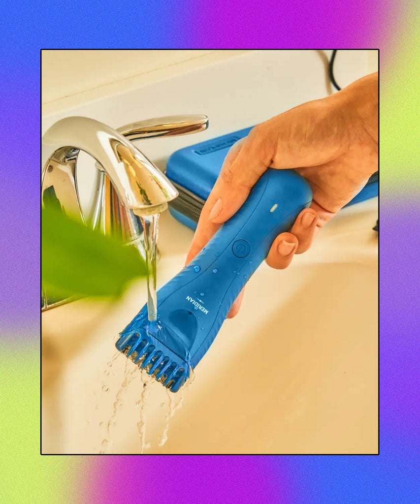 My underwear gets so swampy in the summer, a real estate agent could sell a pair to Shrek. The culprit? Nature’s thick, coarse private-part wig and the bane of my existence: pubes. I don’t condone pube shaming, nor do I think they’re dirty. It just so happens that the luscious, beautifully dense afro that sprouts from my scalp also engulfs my entire mons pubis and — despite endless shaving, waxing, sugaring, and suffering — speedily rises like a phoenix from the ashes every time I banish it for summer. So imagine my intrigue when I got wind of a ball trimmer (yes, an electronic depilatory device designed for use on the scrotum) from the “below-the-waist” grooming brand Meridian Grooming that labia owners swear by for seamless hair removal. Needless to say, I had to try The Trimmer. (Psst, if you too would like to give this trimmer a buzz, use the code SEPT15 for 15% off sitewide through September 30, 2022.)