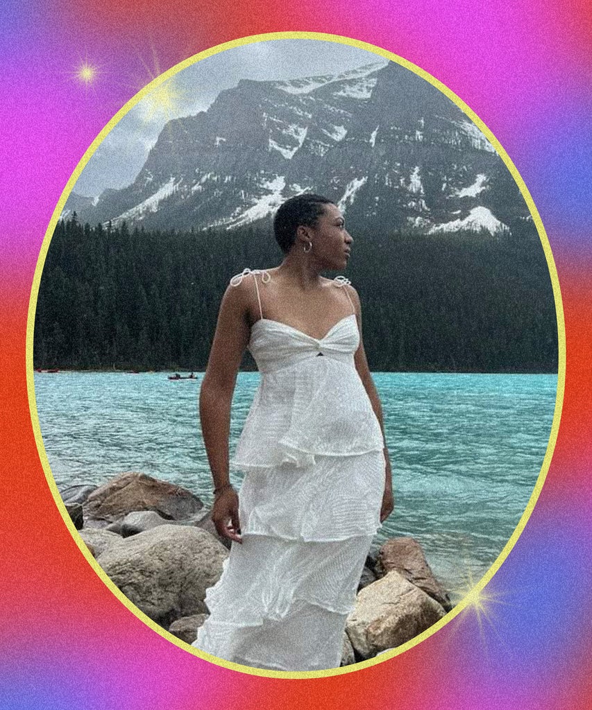 Kayla Zapata Fory didn’t have a quinceañera, but in June 2022, she commemorated her doble quince by honoring her passion. “My brother, a bestie from high school, college, and work wife from my former employer all joined me in Banff, Canada, where I ran my first half-marathon,” she says. Afterwards, they had a small party at her Airbnb, which she describes as “low-key with cake and loud music.” To stay true to her roots, she wore an elegant chiffon dress from a Colombian-owned brand.