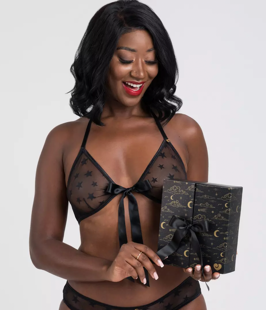 Clad in luxurious black and ribbon, this calendar is filled with unforgettable lingerie pieces in sheer mesh and lace. Available in sizes 4-14 (as well as a separate plus-size-specific Advent calendar), these slinky lingerie sets are a perfect treat-yourself gift for the holiday season.