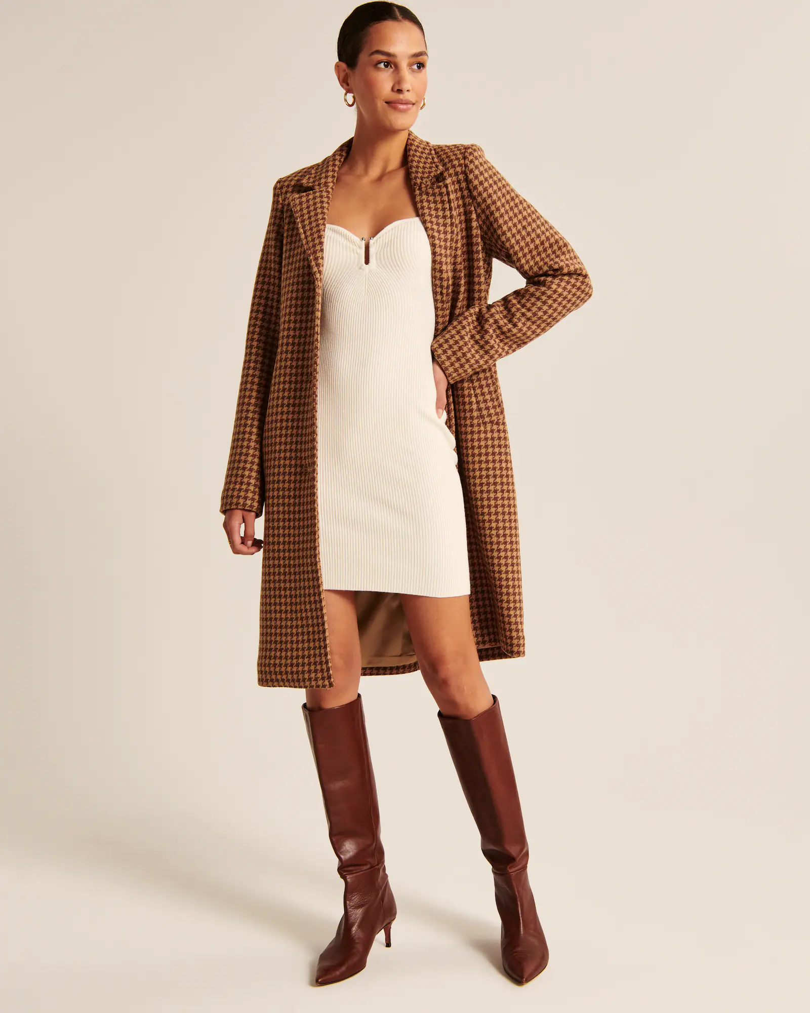 Abercrombie and Fitch Long-Sleeve Hardware Mini Sweater Dress, $, available at Abercrombie and Fitch
