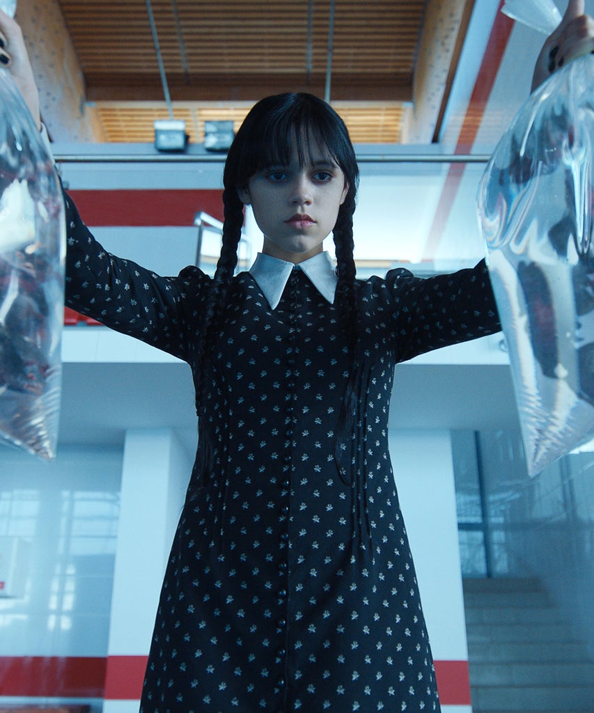 “She comes off a little bit sweet at times,” Ortega shares. “There’s something really special about that because initially, in the comic strips, she’s described as this sweet, sorrowful girl who just likes gore.”