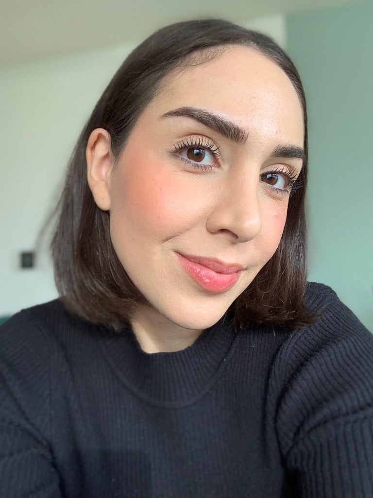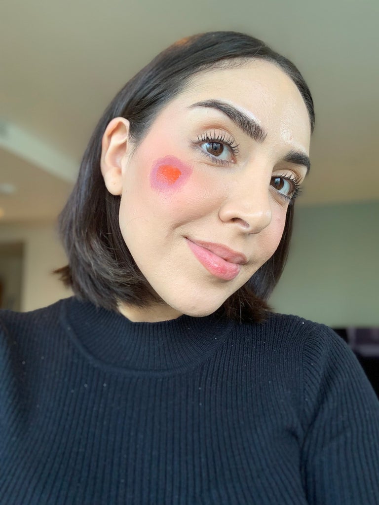The initial effect was…interesting. Sure enough, it did resemble an aura but it’s not exactly something I’d rock day to day. I noticed that Aoife had blended theirs ever so slightly, so I picked up my trusty stippling brush and went over the circular shades until they melted into my skin. Maybe this defeats the purpose of aura blush, but in doing so, I accidentally created the most charming, multidimensional blush shade I’ve ever worn. So much so that I’ve put away my trusty pink creams and powders, as they now feel too heavy and doll-esque. My makeup also earned me a handful of compliments on a Zoom call that day.
