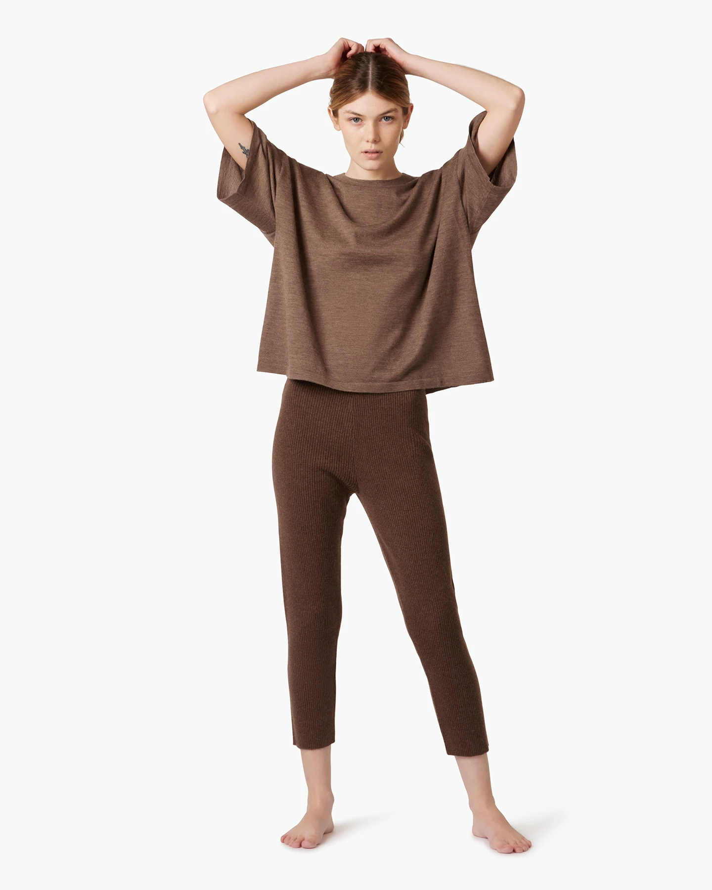 Because these leggings are made from a silky and gentle fine-rib fabric, they work as pjs, lounge pants, even breathable bottoms on a hot summer's day. It's a finer rib than most ribbed garments, adding a touch of delicate glamor to this loungewear staple.