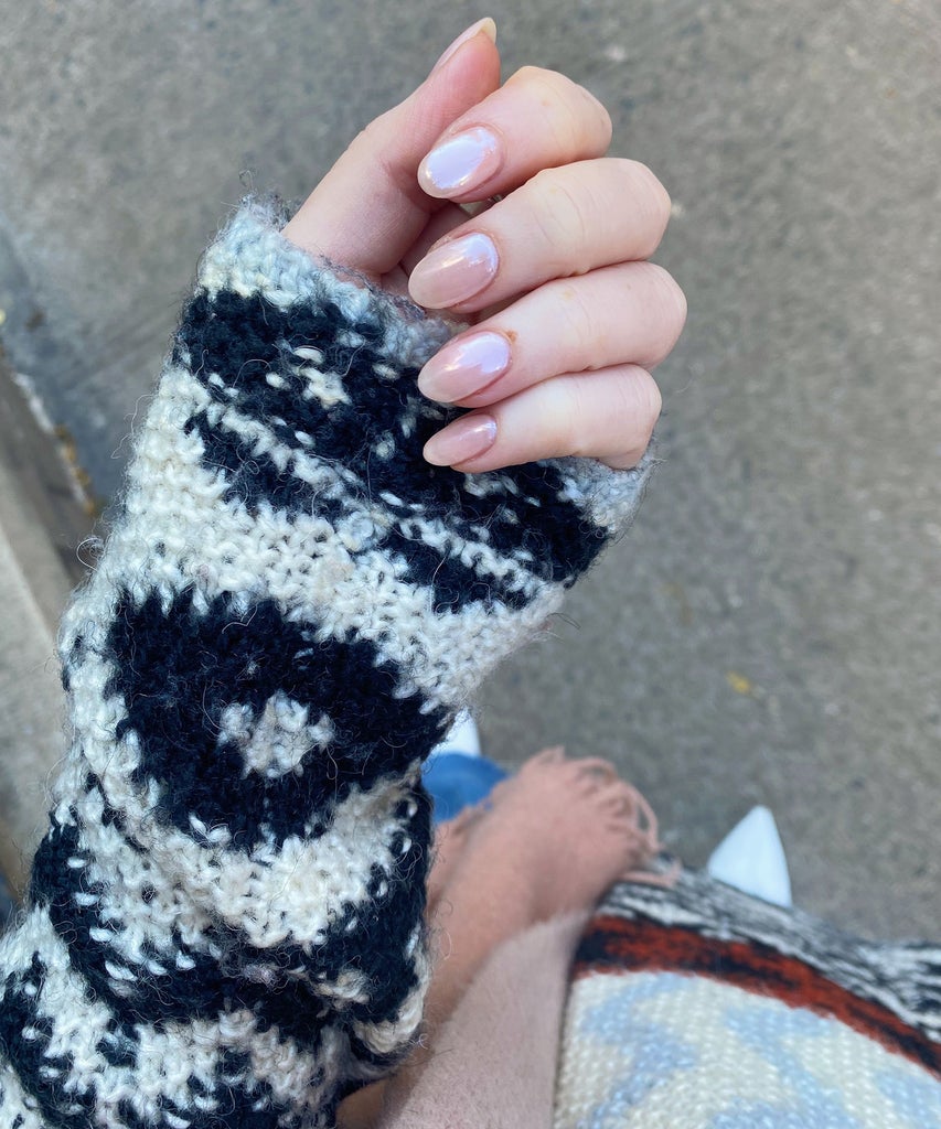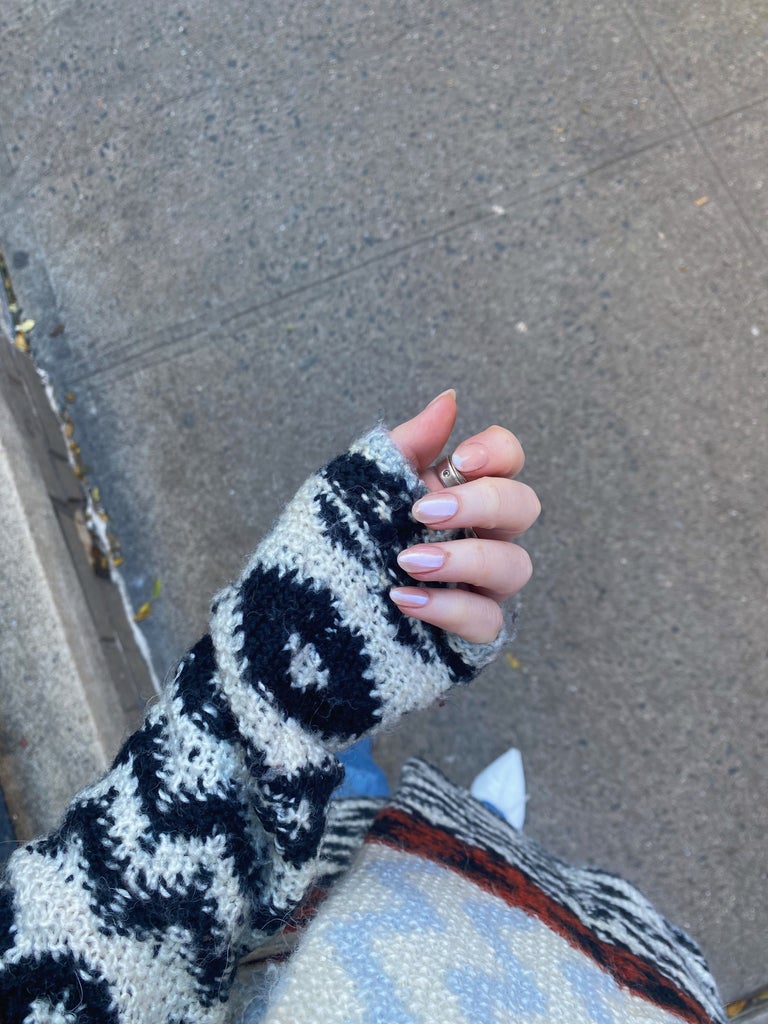 Like the glazed doughnut manicure, lip gloss nails are really just a fun way to market an extra-glossy manicure. You can have yours sheer, tinted, or with some shimmer. I wasn’t calling my nails the glazed doughnut trend, but as I was walking out and showing my finished nails to another artists, they said: “Oh, you got the Hailey Bieber thing.” C’est la vie.