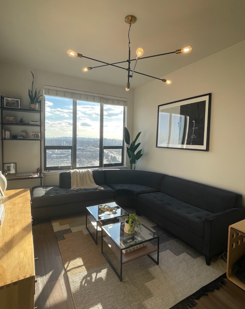 To give some background on the beauty that now graces my living room (and impresses every guest I have over, tbh), the Monroe sectional is a part of Apt2B’s “sectional builder” line. That means you can customize the look of your sectional by choosing from over 55 fabric swatches and four leg colors, selecting the alignment of the chaise, and picking between deluxe innerspring or memory foam mattress styles.