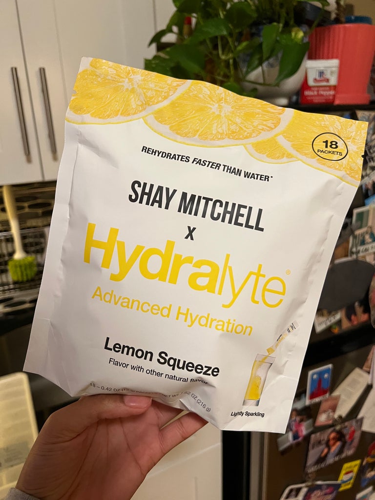 As luck would have it, HydraLyte’s products — including this Shay Mitchell collab — check a good amount of the boxes. One Lemon Squeeze packet includes 6 grams of glucose, 550 milligrams of sodium, 310 milligrams of potassium, citrate, and all-natural stevia leaf. The brand specifically promotes the inclusion of sugar in its formulas. According to its site, “When it comes to rapid rehydration sugar is key.” However, Hydralyte has its limits, “We use precisely the optimal amount [of sugar] for maximum absorption and not a gram more.” And as for dietary restrictions, the packs are vegan, gluten-free, and non-GMO.