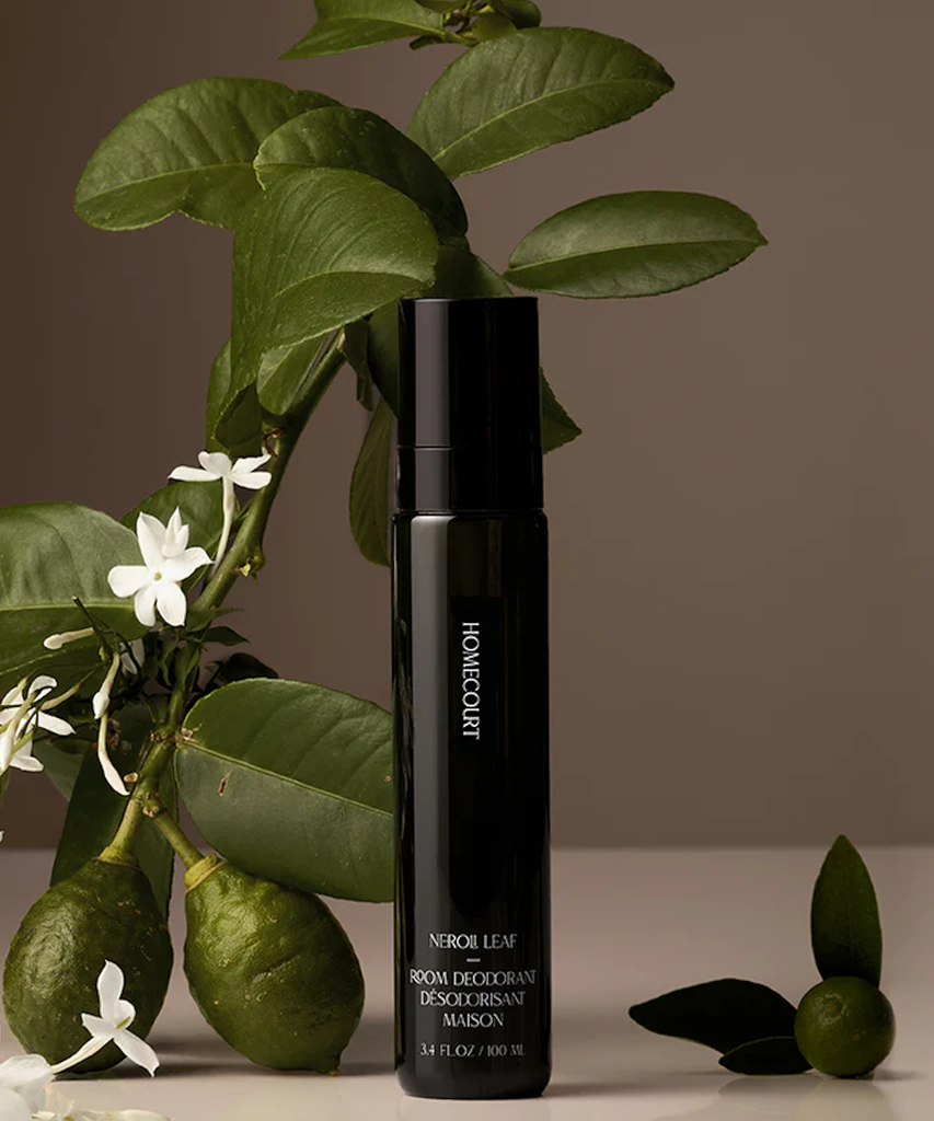 Your bottle of Room Deodorant will arrive in a sleek, black cylinder with “HOMECOURT” printed in a tasteful white serif font. I received an exclusive Nerolie Leaf sample pre-launch, so the notes of crisp apple and neroli blossom are currently in a modest white spray bottle. This didn’t affect my experience in the slightest.