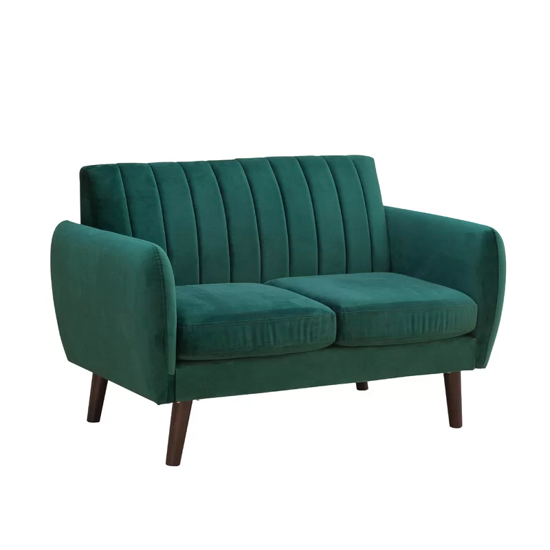 Add a luxe touch to your limited living space with this sleek velvet loveseat in a rich teal blue.