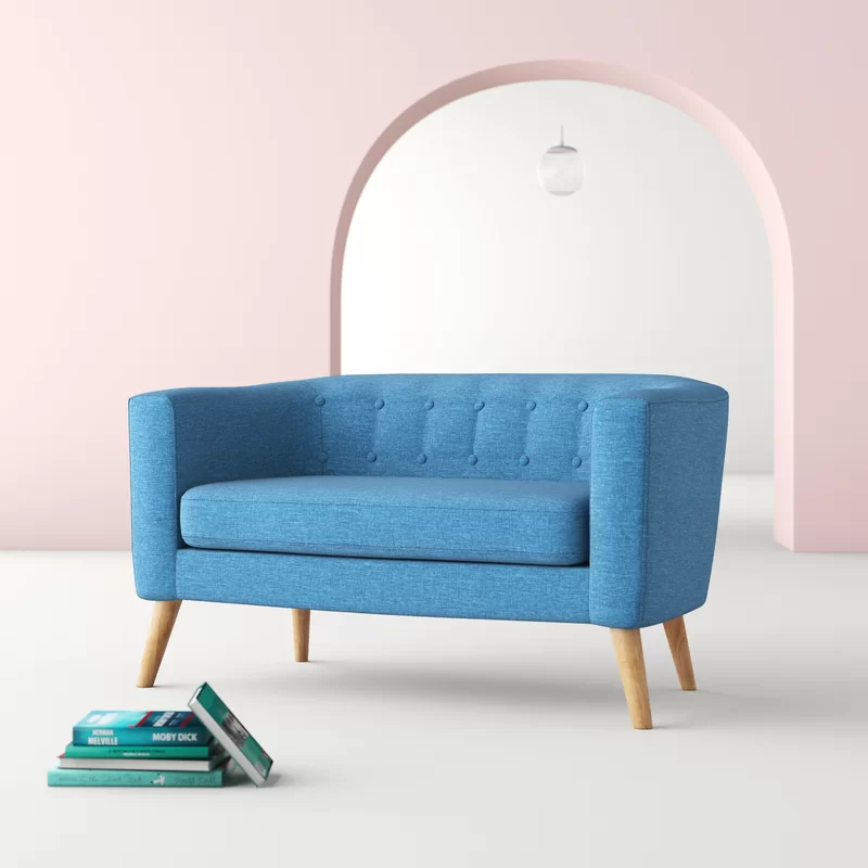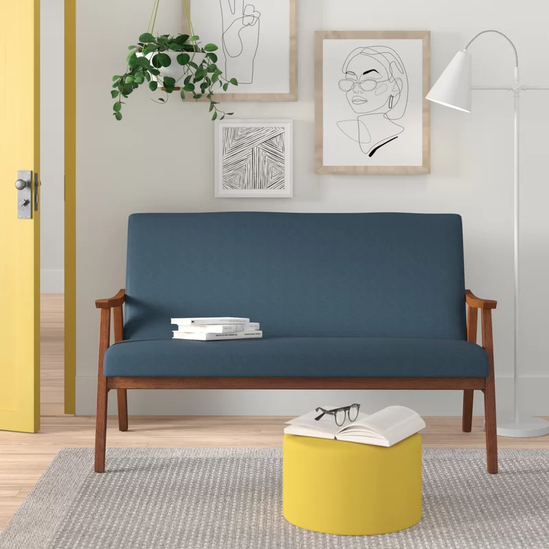 With a mid-century modern silhouette, this rubber-wood frame loveseat is covered in a soft grey-blue upholstery for an overall classic but still comfy feel.The Hype: 4.3 out of 5 stars on Wayfair
