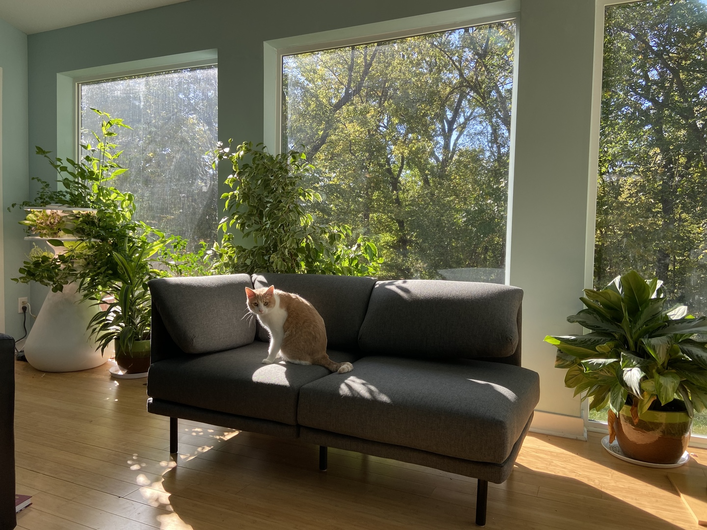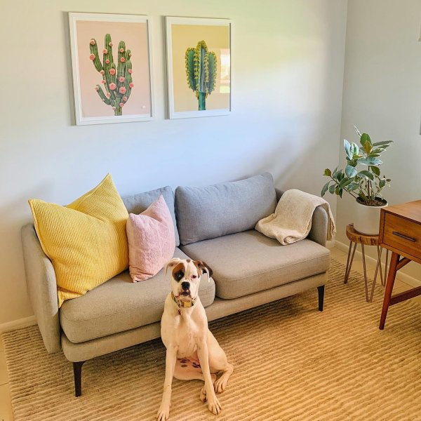 Reviewers Say: "Keeping this sofa forever! I love love love this sofa! It’s very comfortable and perfect for midday naps. The cushions are a perfect balance between firm and soft. The velvet discourages my cats from scratching it and makes it easy to get rid of their hair. Its pattern makes it the perfect bold statement for my small space." — McKenzie M., Albany Park Reviewer