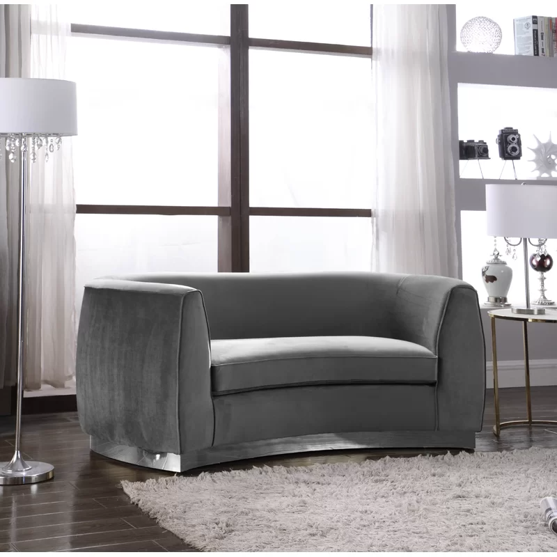 Add a touch of glamour to your living space with this upholstered velvet loveseat with a sleek silver stainless base.