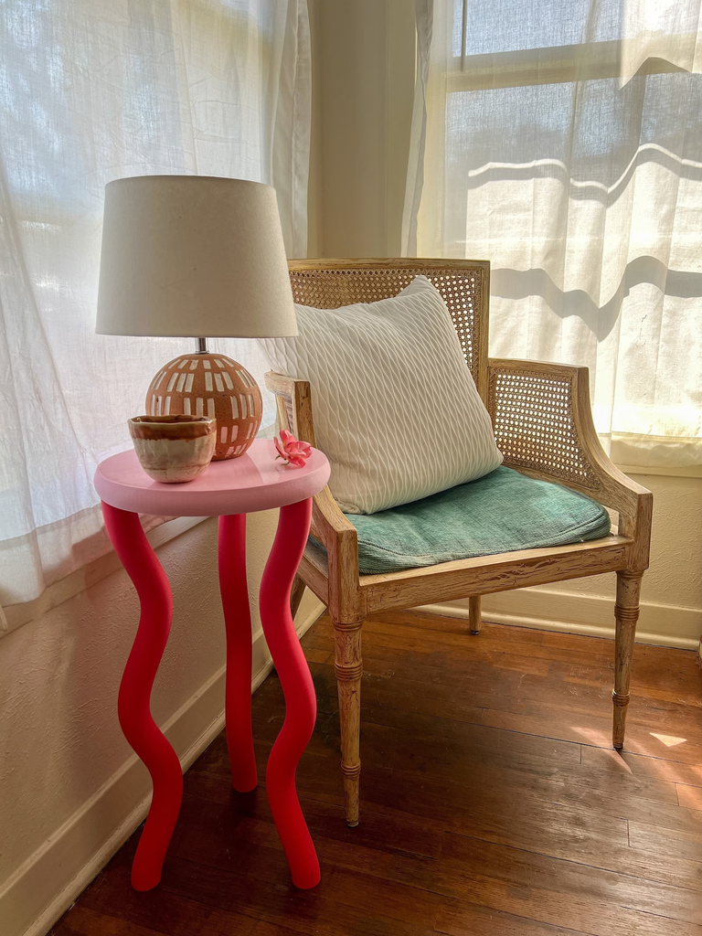 This exuberant trend dominated both the interior design AND the fashion world for the past few years and continues to do so — many were desperate to elevate their moods after lockdown, whether it was via hot-pink cheetah-print outfits or pastel squiggle mirrors. In the home space, it’s characterized by over-saturated loveseats, eye-catching prints, oblong furniture silhouettes, unique textures, and color, color, and more color. Devout minimalists call it overwhelming, maximalists say it’s a happy person’s must-have. We deem it a fun trend one can easily attain with the help of the internet. More specifically, with this hit list of 24 pops of color — from deafening accent chairs to tulip side tables, boho throw pillows to pastel mirrors, and more dopamine decor of all sorts. Put an item or two in your cart — and a little pep in your step — before spring has even sprung with these eccentric pieces below.