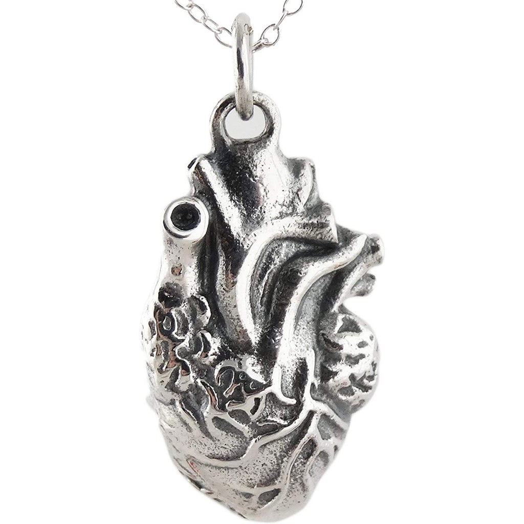 Sterling Silver 3D Anatomical Heart Charm Necklace, $48