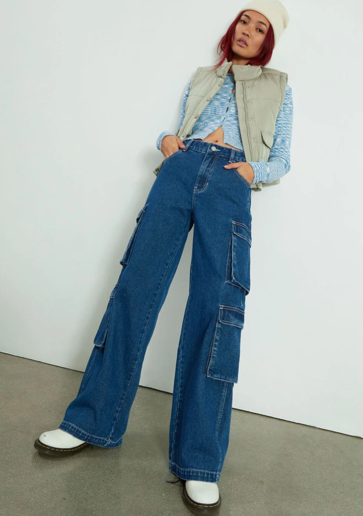 Among the major trends in 2023 is utilitarian wear — the face of which is undoubtedly the cargo pant. Big and baggy, this oversized silhouette is straight out of the Y2K era and has become so popular, it’s infiltrating the denim category, too. As bold as these bottoms look, their ultra-loose fit also means they’re breezy.