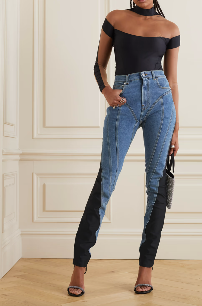 Wherever you stand on the subject of skinny jeans, we can say with certainty that they’re not going anywhere anytime soon. Especially not when covetable labels like Mugler are doubling down on the divisive trend with its signature Spiral silhouette (categorized by Net-A-Porter as a “cult find”). From elevated slits to fabric panels to corset-inspired waists and cut-outs, there’s nothing basic about this season’s skinny jeans.