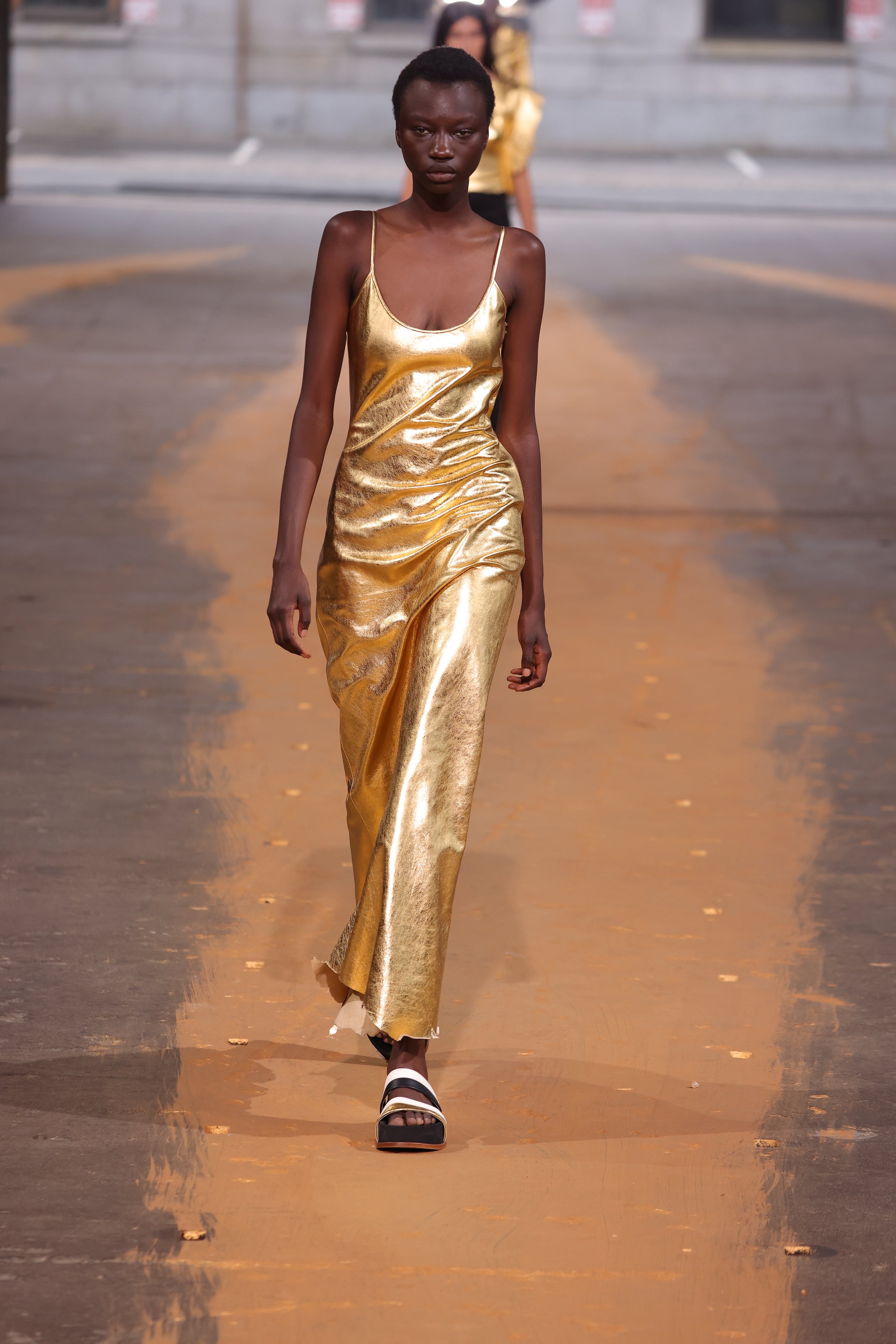 Think beyond layered chain necklaces and big hoop earrings (although those are perfectly acceptable interpretations of the color). This season, it’s all about the metallic trend — gold dresses, shiny swimsuits, and fringe embellishments, ensuring you’ll literally shine each time you step out of the house.Photo: Greg Kessler/Gabriela Hearst