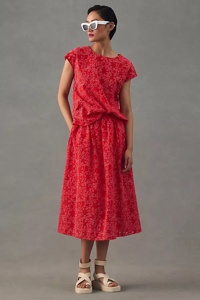 Technically, red is a seasonless color — it pops up whenever the leaves start to fall and is a mainstay during the winter holidays. Still, that didn’t prevent the bold hue from making a statement in Spring 2023 collections from Loewe, LaQuan Smith, Akris, and more. While all versions of red will heat up your warm-weather outfits, we’re leaning toward a shade with an orange tint, which feels especially fiery and fun for summer.Photo: Selwyn Tungol/LaQuan Smith