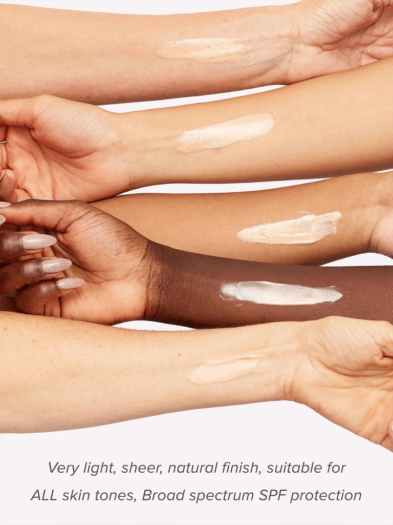 “I’ll be honest, ‘tinted’ is not necessarily the word I would use to describe this moisturizer. The product itself melts seamlessly into my face but the tint is so minimal that I can’t tell how visible the coverage is. It blurs rather than tints. But, as someone with a deep skin tone, I’ll take a sheer, hydrating, and lightweight product with SPF over a greasy, white cast-inducing formula any day. Plus, I would say that it IS universal since the tint is so subtle.