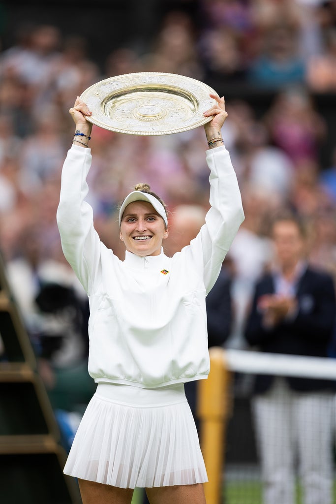For evidence, look to the great tournaments. Anne White played in a full white catsuit at Wimbledon in 1985, while Venus Williams once wore a lingerie-inspired dress to play at the French Open in 2010. Before her retirement in 2022, Serena Williams was known for wearing out-of-the-box athletic wear, from bodysuits and crop tops to corseted tops and animal print dresses. More recently, during the 2023 Wimbledon tournament, where there’s a strict all-white dress code, 2023 champion Marketa Vondroušová sported a sheer skort (pictured above) that looked like a ballet skirt to win the women’s singles final.