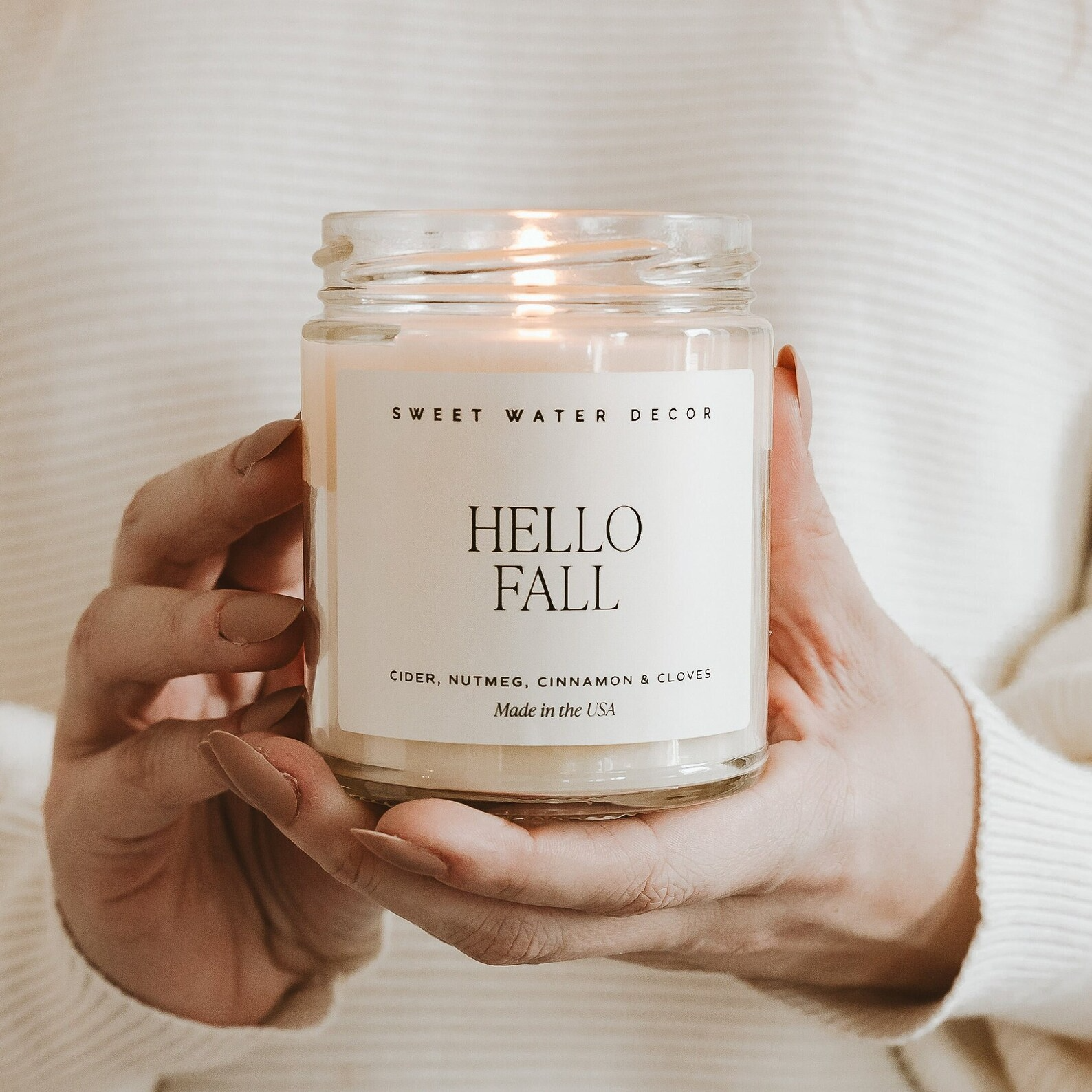 SweetWaterDecor Hello Fall Candle, $, available at Etsy