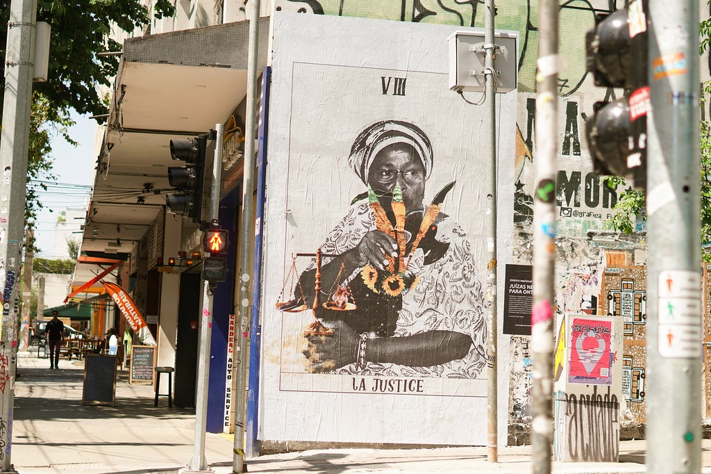 On the streets, the project Juízas Negras para Ontem is bridging art and politics. Currently, 14 Brazilian cities — including Manaus (in the Amazon), Porto Alegre (in Southern Brazil), and Salvador (the Blackest capital of the country) — showcase the works of 24 Black artists. All of their artworks stir attention to the importance of the cause. In one mural, artist Ayala Prazeres blends her self-portrait with a powerful quote by Angela Davis: “When the Black woman moves, the whole structure of society moves with her.” In another piece, artist Dacordobarro juxtaposes images of her neighborhood (recognized as a quilombo urbano, an urban community that preserves its African heritage) with three Black woman jurists, and asks: “Can we imagine a Black minister in our country?” Similarly, Alisson Damasceno, an artist from Belo Horizonte, illustrated a Supreme Court Chair surrounded by Saint George’s swords, a sacred symbol for Afro-Brazilian religions.