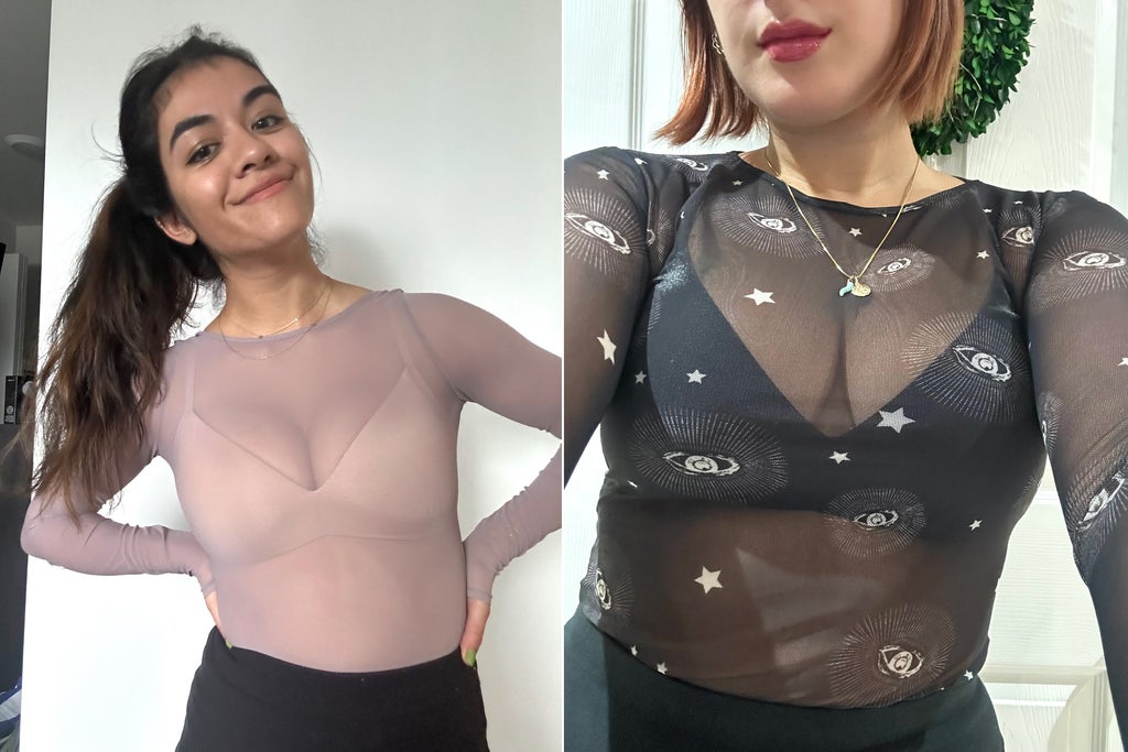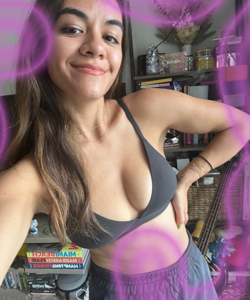 “I was cautiously optimistic about the triangle bralette but very down to give it a go. I usually need bralettes with a thick band to accommodate my D cups, and this one looked pretty sleek. However, as soon as I tried it on, I had to eat my words. My boobs felt super-supported, and the cups offered a good amount of support even with their minimal coverage. (For reference, I’m wearing a size small here, and am a 30-32D). Also, the fabric is so soft that I literally never want to take it off, and the adjustable straps really gave me the support I need. It’s too cute not to show off, so I can’t wait to wear it underneath sheer tops or when I’m lounging around at home.” —Karina Hoshikawa, Senior Writer