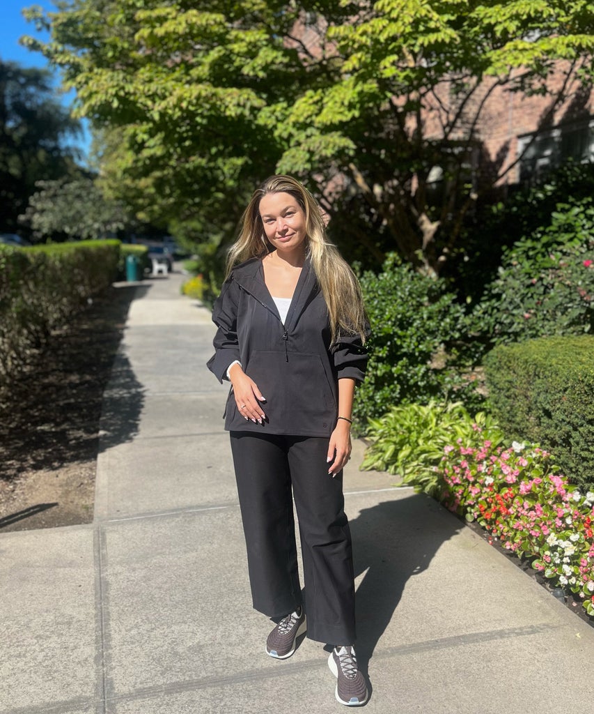 “I often have to go from the plane straight to a fashion show, meeting, or presentation, thanks to pesky 3 p.m. check-in hotel rules. These Lululemon Utilitech Relaxed Trousers can easily go from plane wear to presentable, thanks to their tailored fit. While it looks constricting, it is actually relaxed, especially when paired with a tank top and blazer, which I always carry in my carry-on after losing my luggage a few too many times. The anorak is equally fashion-forward with a cropped but loose fit that could pair just as well with a midi skirt. Bonus: The water-repellant fabric is great for rainy days.