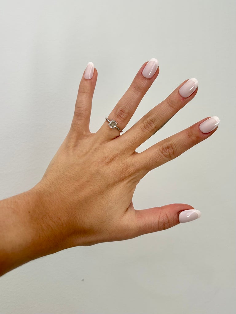 The whole process from start to finish took around a half-hour — I did my mani while watching the Doja Cat episode of Hot Ones — and the results were pretty perfect: The fit was comfortable and lightweight (they don’t have that bulky, acrylic-set feel that you get with some press-ons) and it was easy to type and use my phone with them on. As Gibson Tuttle told me, the Super Stick nails are thinner and more flexible than The Instant Mani press-ons, which makes them super comfortable and easy to pop on. Not only is there obviously zero dry time, but the designs offer something for every mani mood. (I went with Classic French, pictured here.) The finish was as glossy as a fresh gel mani, and they lasted through hot yoga, dog walks, and hours of writing — I have them on as I type this! (Reminder: These are literally $8 each. A solid gel manicure at my local salon is $55.) Finally, I ran the Cuticle Serum pen over my cuticles and sides of the nail to quench any dry spots for that salon-perfect finish.