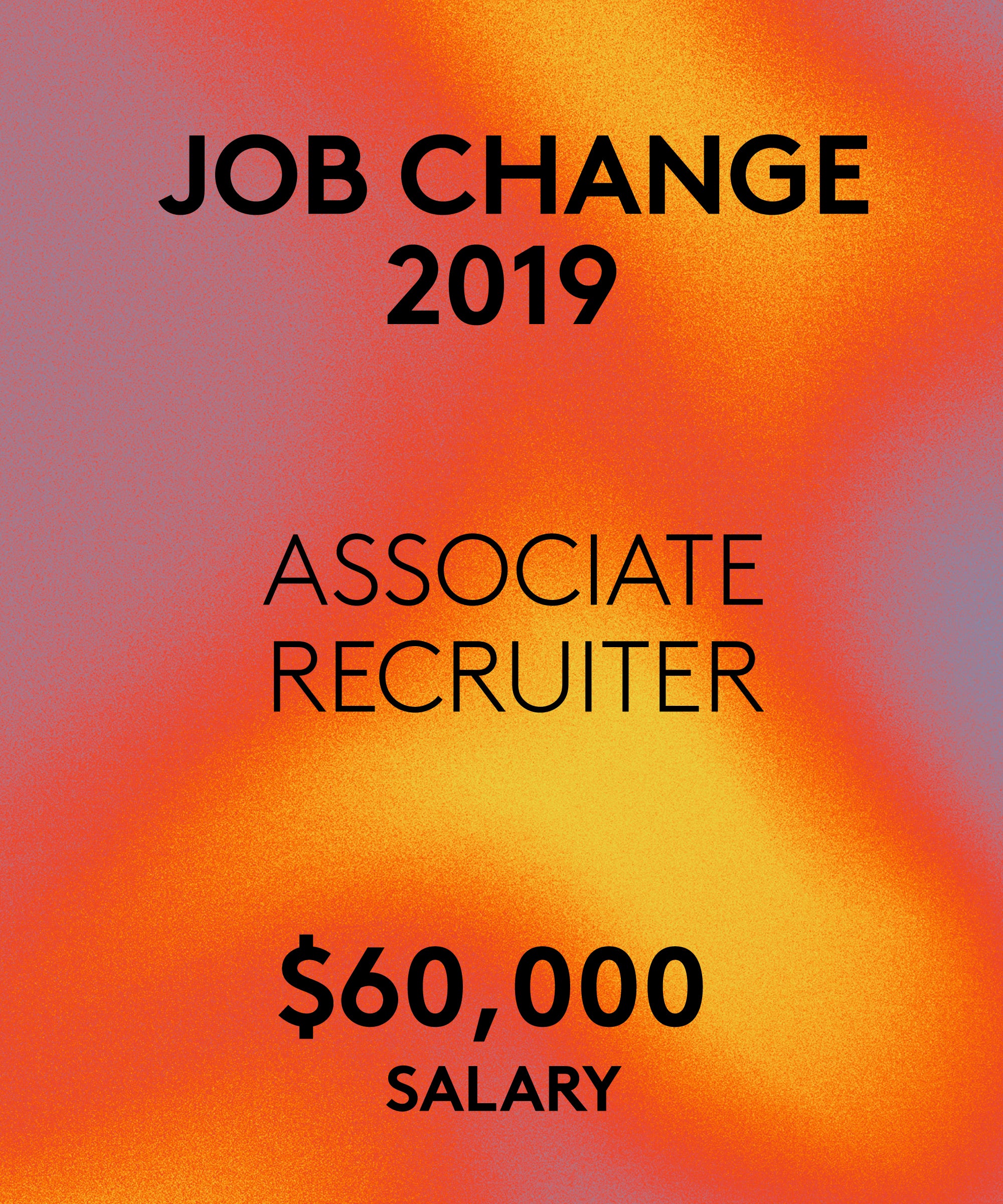 I ended up receiving an offer, unfortunately with zero negotiation, for $60,000 salary with no stock. Our company does not do commission for recruiters, and given that I was over performing in sales this was actually a pay cut.About one year in, I received an 8% ($5,000) raise and was at a $65,000 salary. It was my first raise not tied to promotion, and I did not negotiate. I was just relieved to get the role and a mentor of mine at the time advised I just take what I was offered, which in retrospect I probably shouldn't have done. I was paid way less than my peers with similar levels of experience.Six months later I was promoted from associate recruiter to recruiter. I received a $5,000 bump bringing me to $70,000. At this point I had spoken with a lot of my teammates and realized I was underpaid. After I asked, HR told me I was in the bottom 25% but that they could not elaborate more. I negotiated and was bumped up to $83,000.