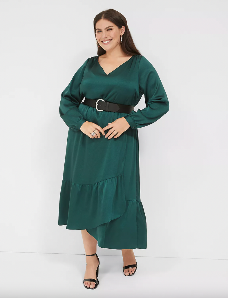 Lane Bryant Textured Satin Long-Sleeve Wrap-Skirt Midi Dress, $119.95 $47.98