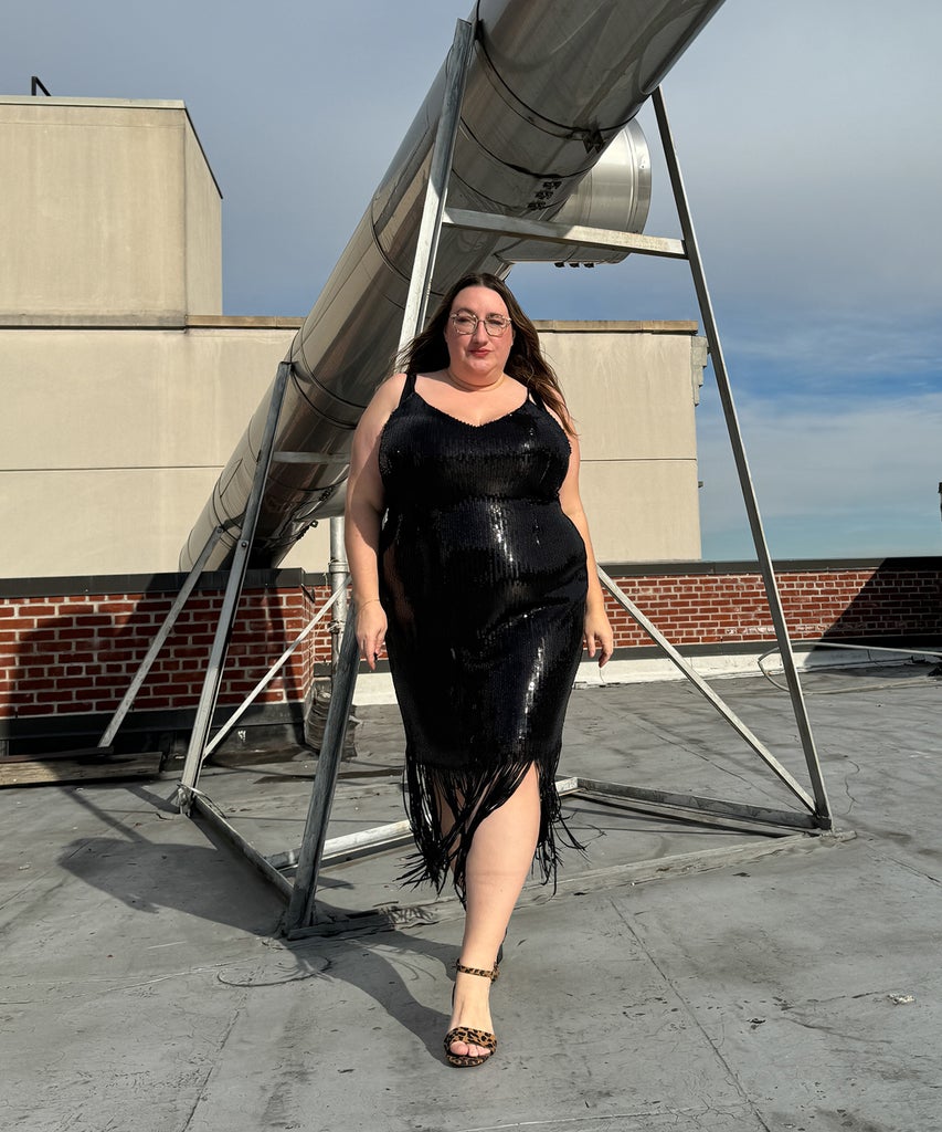 On the style front, Rebdolls’ styles are fun and fashion-forward, with pieces meant to show off curves instead of hide them. They have a lot of great holiday-ready dresses and separates, and I find their fit to be really good for the more affordable price point. I love that this sequin number has a soft stretch lining — perfect for a party where you plan to be on the dance floor — and a fringe hem that demands that you get out there and shimmy. I am typically an 18/20 or 2x, and I found this dress to be true to size. One thing to note: For this dress (or any sleeveless sequined piece, really), the sequins can scrape the inside of arms a bit with wear so you may want to add a jacket or a layer with sleeves.