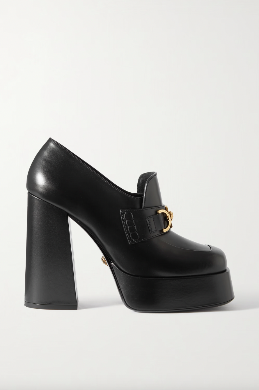Versace Embellished Leather Platform Loafers, $, available at Net-A-Porter