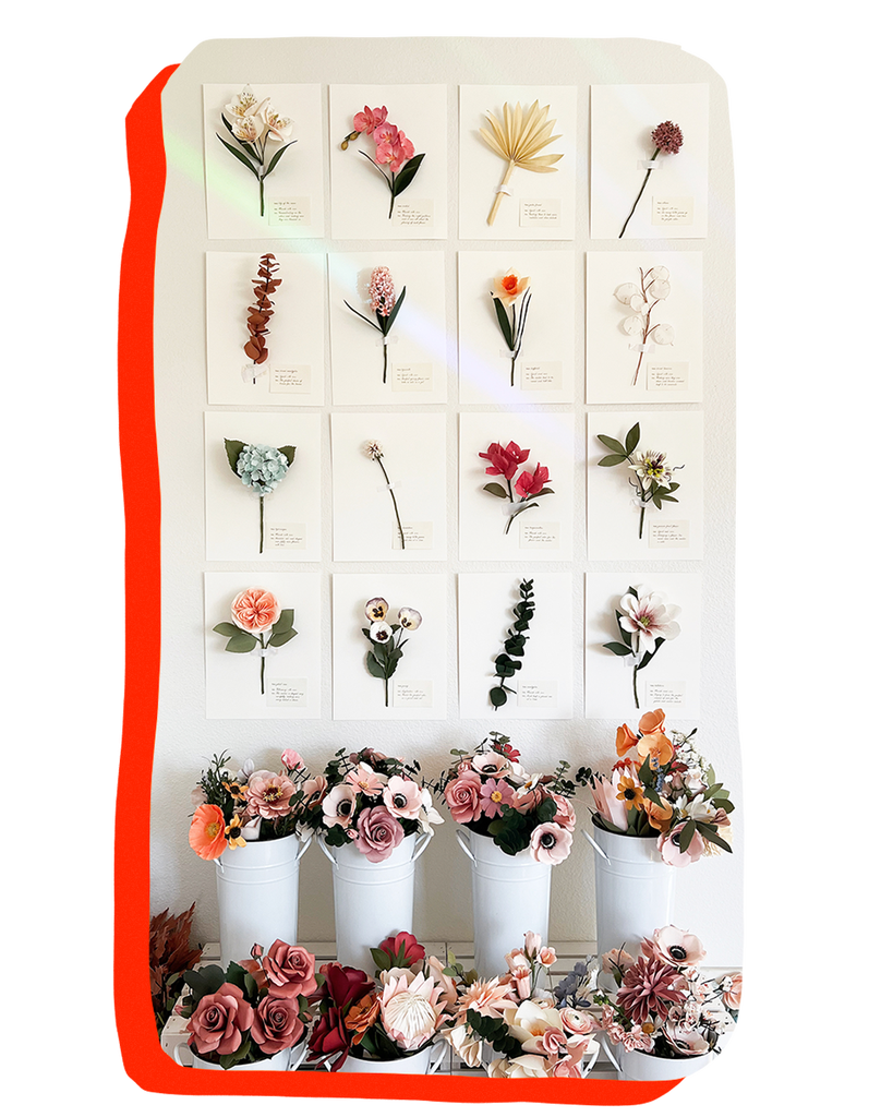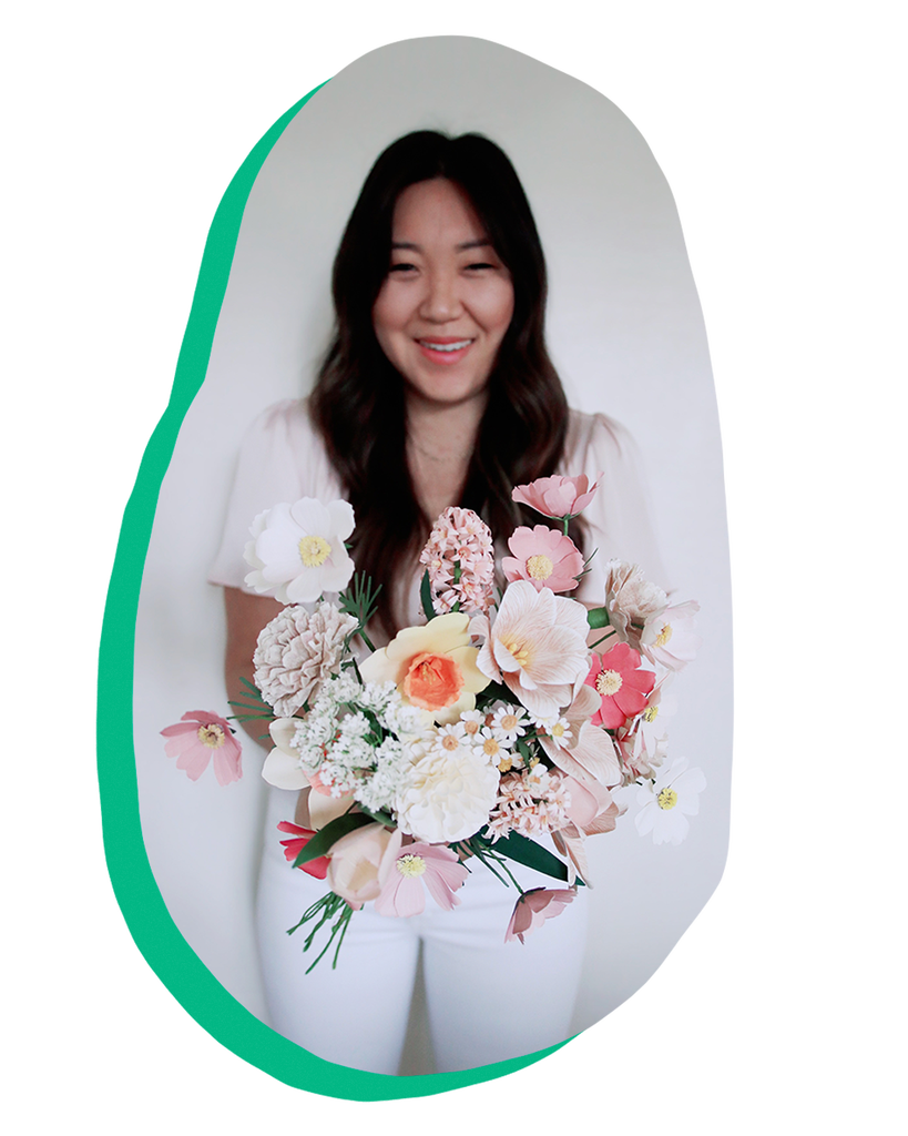 Kim graduated as a violin performance major and became a music teacher; in her downtime, she’d craft as a way to wind down and relieve stress. In 2010, she turned it into a business, the first iteration of which was selling handmade paper cards, with paper flowers on the side. But she quickly realized that was neither sustainable nor profitable — she was spending an hour constructing these elaborate cards only to sell them for a dollar.