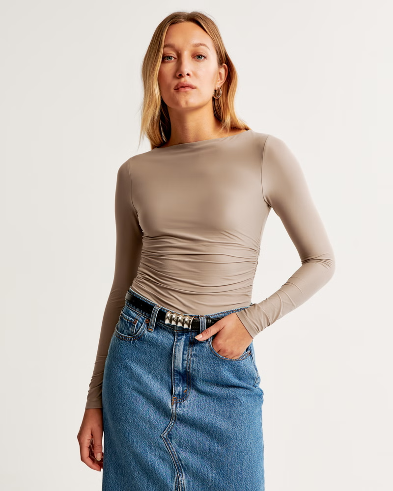 Abercrombie & Fitch Soft Matte Seamless Long-Sleeve Slash Bodysuit, $, available at Abercrombie & Fitch