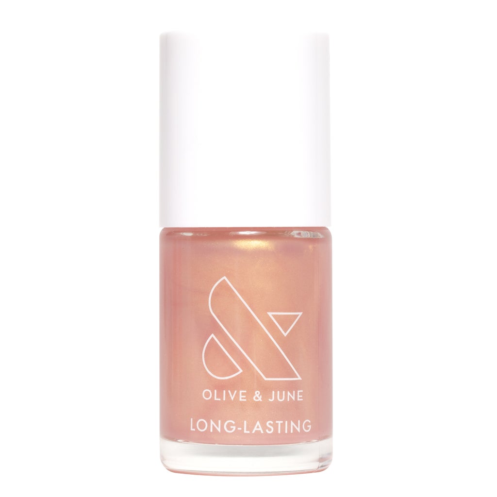 Spoiler alert: You can actually get a full-size bottle of this mesmerizing shimmery gold for free with any purchase of any Olive & June mani system. “This is a subtle golden sheer that was inspired by shimmery summer body oil,” Gibson Tuttle shares. “The glazed trend is not showing any signs of stopping, but we’re excited about this warmer, more golden take.”