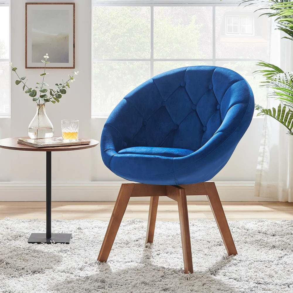 This bright and modern swivel chair is perfect for small offices spaces and reading nooks. It features a circular seat that's wrapped in tufted soft velvet and comes in an array of jewel-tone shades.