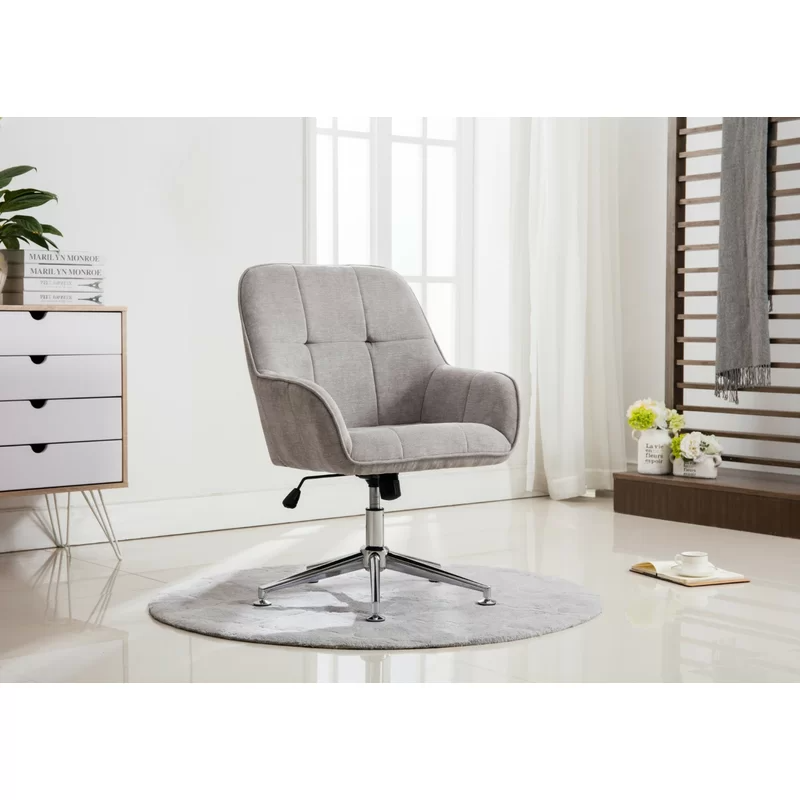 This cute cotton-blend armchair provides comfy deep-pocketed support in a compact frame that reviewers love to sit in while WFH – it also packs a stylish wheel-less frame and secret-swivel capabilities.
